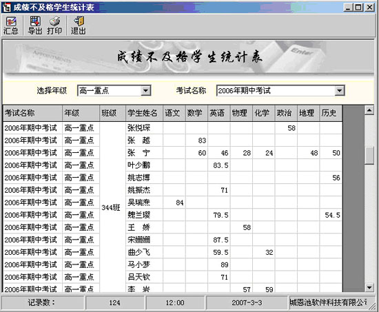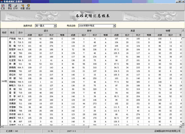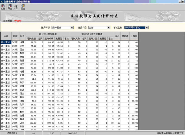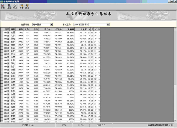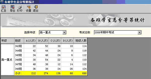 (標(biāo)準(zhǔn)等第分統(tǒng)計(jì)界面)